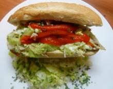Ciabatta met kipfilet americain met pesto.